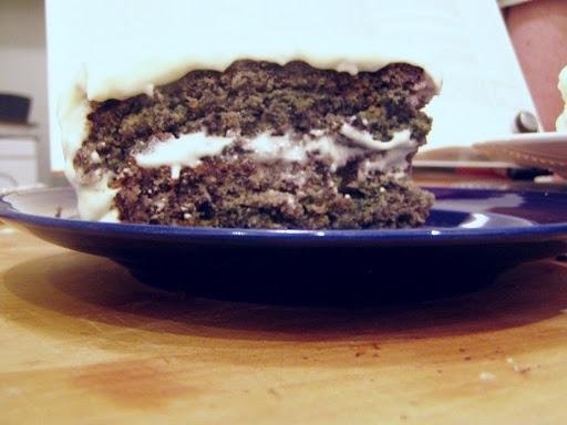 Belatedly, I realize that the entire point of the Amateur Gourmet’s Blue Food Contest is to make blue food look “appetizing,” not necessarily chronicle the efforts of a slightly off-balance person to produce blue food without blue food coloring. Nevertheless, the hotly pursued Blue Velvet Cake, while not aesthetically stunning or really even that blue, was actually . . . good.