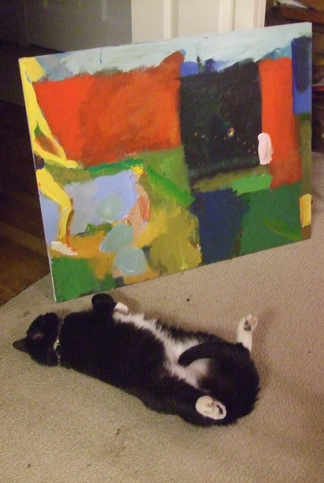I like to keep homemade pizza crust in the freezer, then put it into the refrigerator to thaw a day or two ahead. In this case, “a day or two” turned into a week, and the crust was gluey on one side and stiff on the other by the time I went to bake it. Still Fred declared it the best pizza crust he’s ever had, and even I have to admit it was quite good–thin and crispy, without a hint of sogginess.