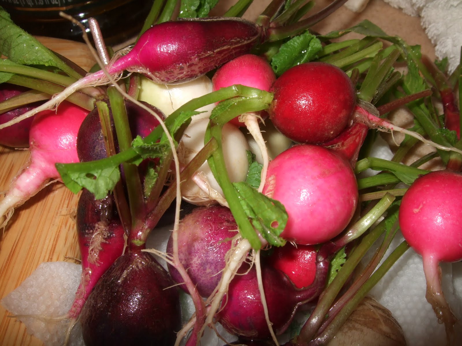 Right now, we’re appreciating green tomatoes, as well as radishes, turnips, and their accompanying greens.